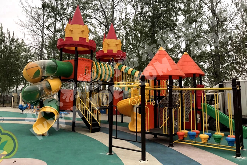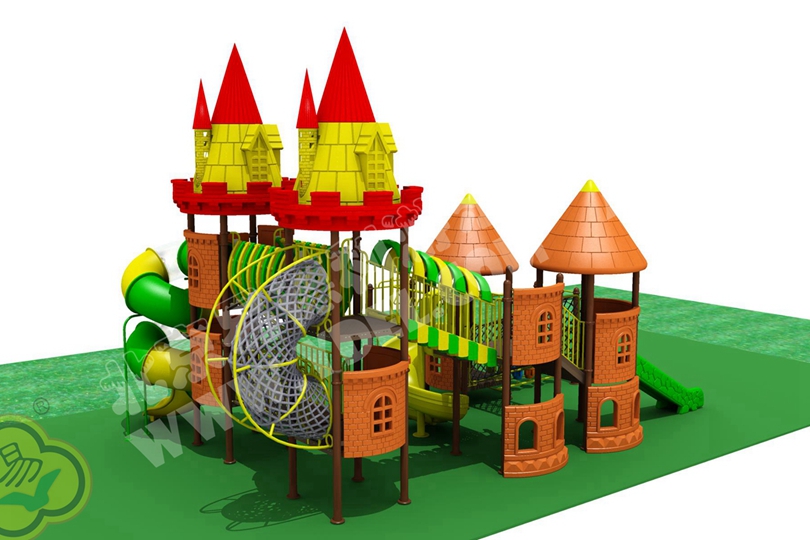 易德利獨家供應城堡系列滑梯,城堡造型頂高檔大氣獨具特色。滑梯塑料部分采用進口工程塑料,色彩鮮艷,常年不褪色;鐵件部分烤漆工藝,適用于戶外不易褪色;繩網采用中心帶鋼絲航海繩,堅固耐用