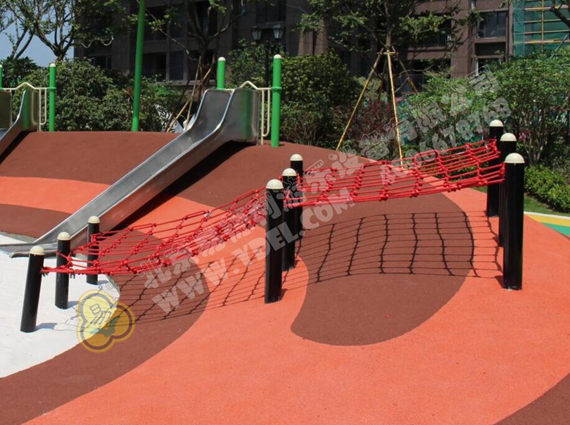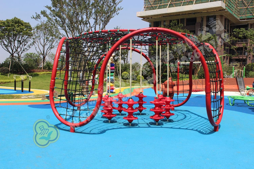 一眼望去,最引人注目的定是這紅色攀爬網(wǎng)。每個(gè)孩子的心中都住著一個(gè)“蜘蛛俠”,希望能像蜘蛛俠一樣在爬網(wǎng)上穿梭自如。